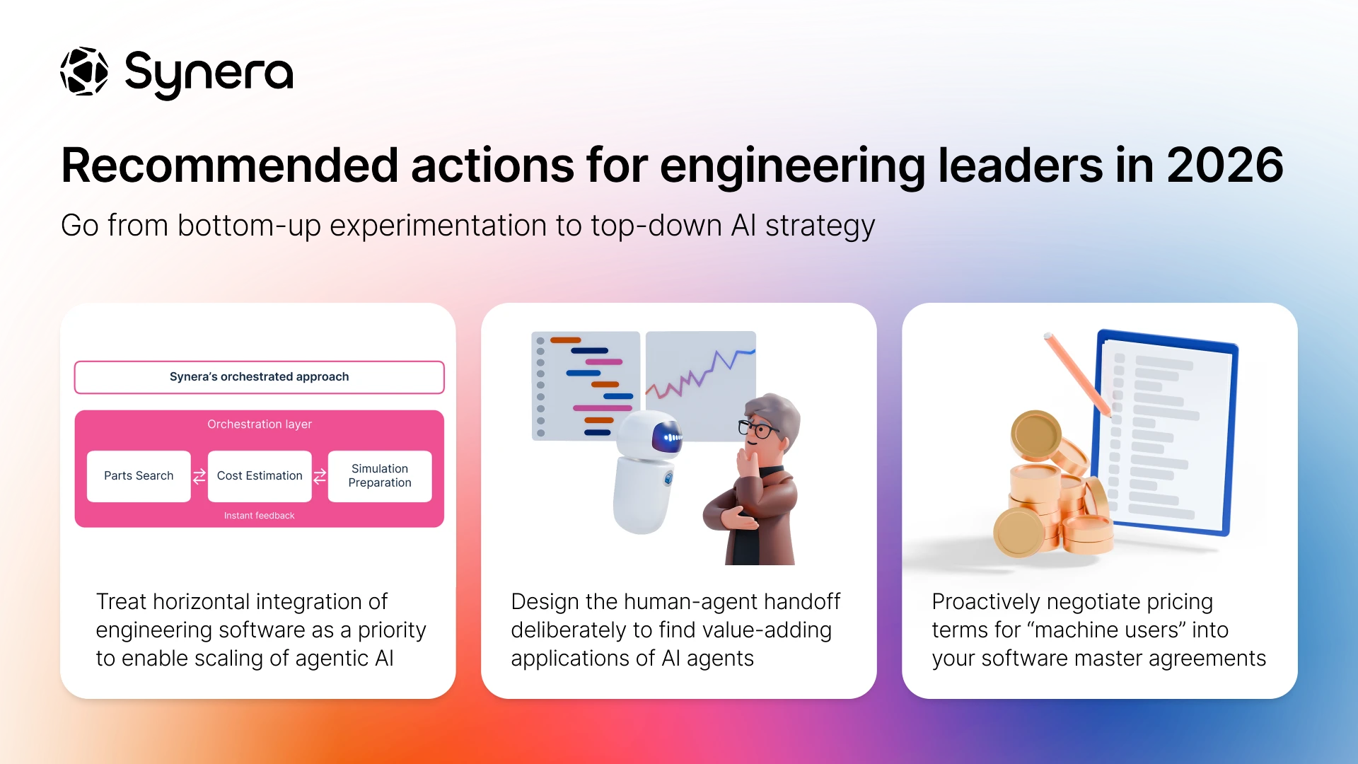 Watch the webinar with Dirk, Ram, and myself to hear how these predictions unfolded in real time, or explore how Synera AI agents work in engineering.