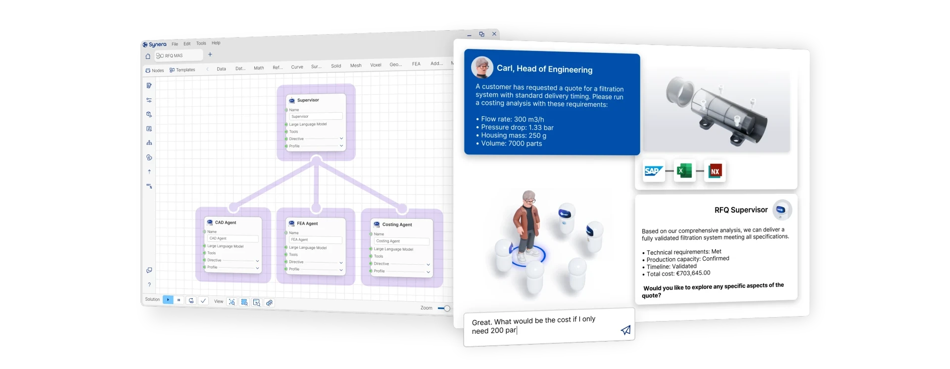 Synera pursues a clear approach: the AI agents orchestrate existing engineering tools in a manufacturer-independent and deterministic manner. They do not deliver ‘hallucinated’ results like classic LLM co-pilots, but control proven workflows and solvers in a reliable and traceable manner. As a link in the engineering stack, Synera enables true end-to-end automation without additional programming.